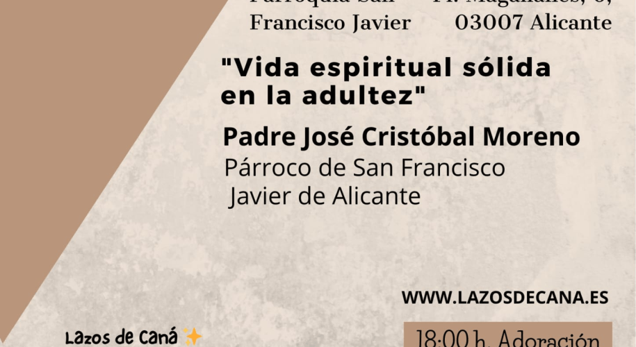 Lazos de Caná, es una asociación Católica para católicos solteros de 30 a 60 años con vocación matrimonial. Ofrece una gran variedad de eventos y actividades para que se acerquen más a nuestro Señor y para tener más encuentro entre los miembros del grupo. Hay un evento mensual compuesto por, Eucaristía, Adoración, formación con ponencias de primera línea, y un aperitivo para que todos los … Continúa leyendo LAZOS DE CANÁ Sábado 21 febrero