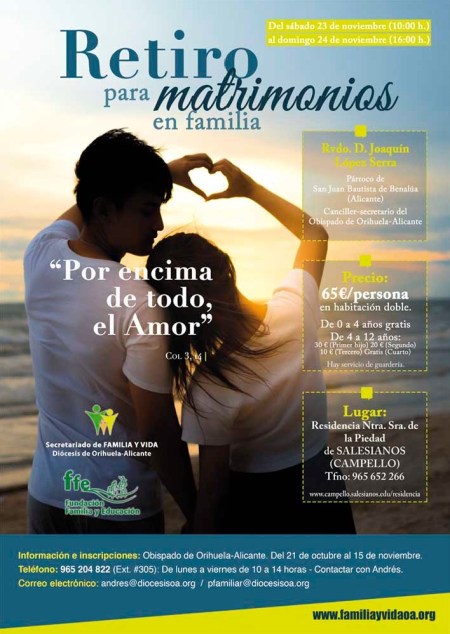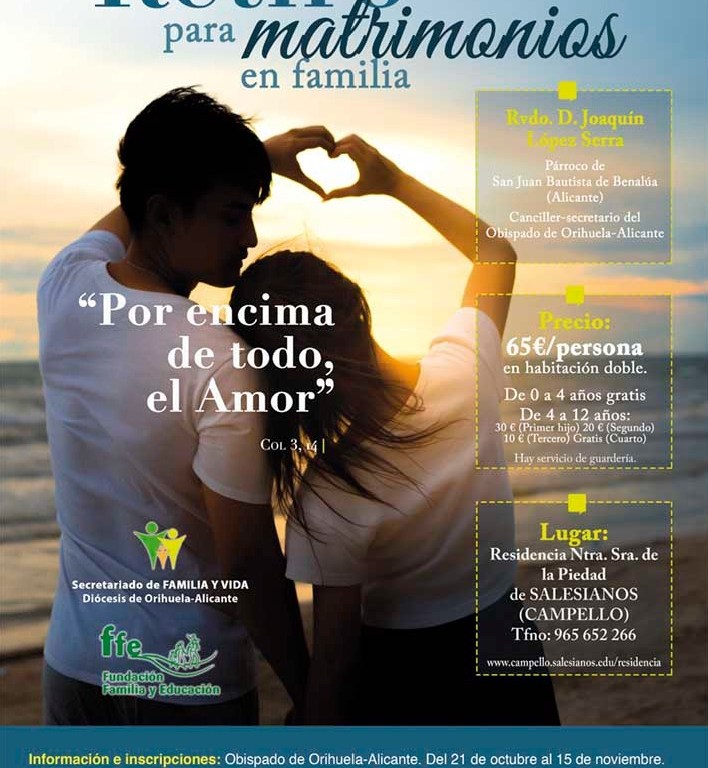 FFE, Secretariado de Familia y VidaRETIRO PARA MATRIMONIOS EN FAMILIA Comparte esto:Tweet Enviar un enlace a un amigo por correo electrónico (Se abre en una ventana nueva) Correo electrónico Más Compartir en Telegram (Se abre en una ventana nueva) Telegram Imprimir (Se abre en una ventana nueva) Imprimir Compartir en WhatsApp (Se abre en una ventana nueva) WhatsApp Me gusta Cargando... Relacionado